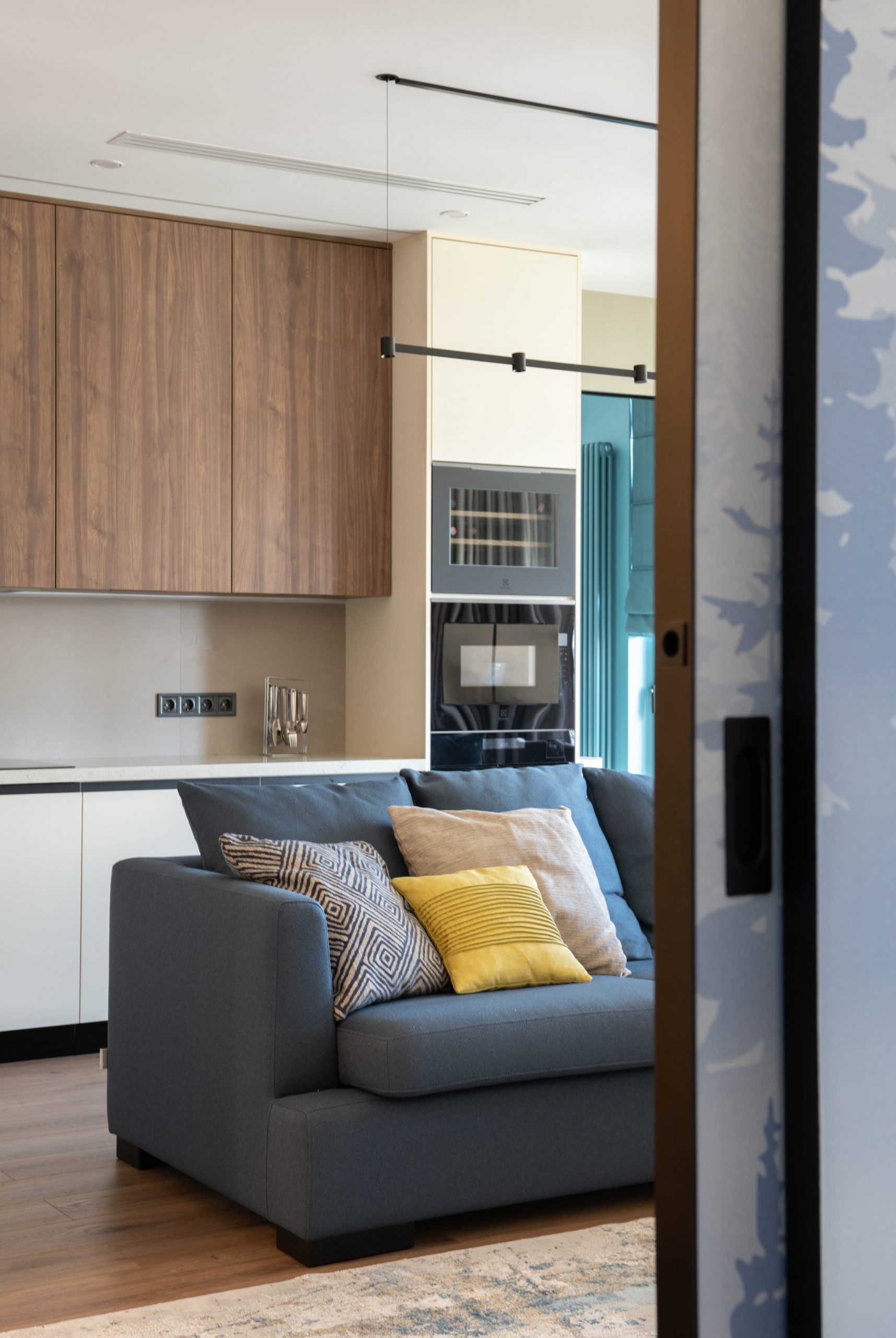 Проєкт "Морський Лофт" Оформлення вітальні студіо в стилі лофт з елементами в морській тематиці. Багатофункціональне, яскраве приміщення, місце для відпочинку в підвісному кріслі, диванна зона, прийом і приготування їжі - все в одному просторі.